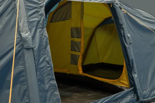 Everest Air Tunnel 3-4 är ett tunneltält för upp till fyra personer. Det är något mindre än Air Tunnel 5, men bjuder i gengäld på ett mera kompakt mått och betydligt lägre vikt. Tältet har ändå gott om utrymme att sitta i absiden. Det kan snabbt och enkelt sättas upp tack vare uppblåsbara tältbågar i tåligt TPU-material. Yttertältet är försett med två fönster med myggnät. Fönstren ger bra ljusinsläpp samtidigt som de ger bra ventilation. Yttertältet har även justerbar ventilation på kortsidan mot sovdelen. Golvet i PE-material är både tåligt och helt vattentätt. Golvet och väggarna är hopsydda vilket gör det lättare att hålla rent inuti tältet och gör det svårare för insekter att ta sig in.