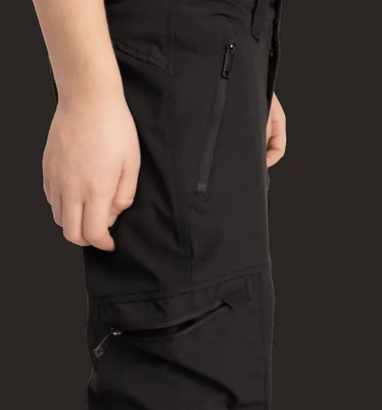 Friluftsbyxor som passar lika bra på fritiden som till vandringen. Byxorna är gjorda i återvunnen polyester och har en vattenavvisande ytbehandling och fyrvägsstretch för extra rörelsefrihet. De har också förböjda knän för ytterligare rörlighet, flera fickor med dragkedja samt justerbara benslut för enklare på- och avtagning. Midjan har ett justerbart band på insidan för bästa passform och knän och rumpa är förstärkta med ett slitstarkt och vattentåligt material för att klara många timmar utomhus. Plagget är fritt från miljöfarliga fluorkarboner.