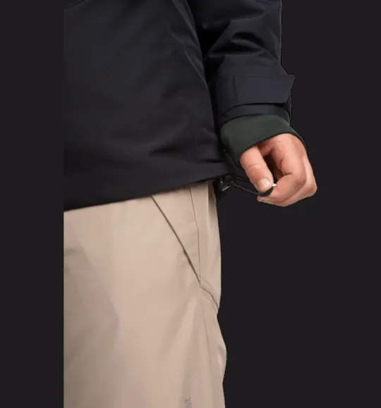 - Elastisk mudd med kardborrejustering i ärmsluten, justerbar dragsko i nederkanten