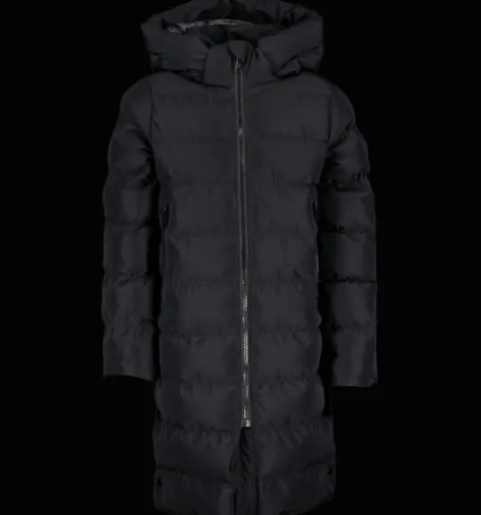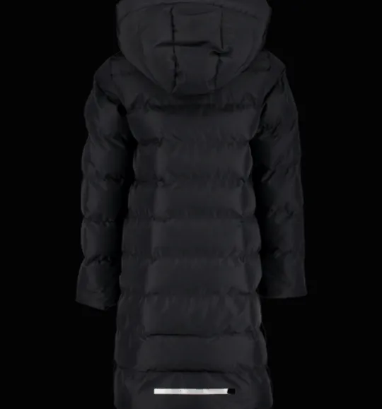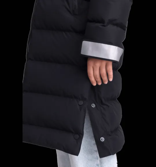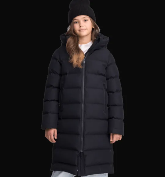 J Grando Coat från Everest är en varmfodrad höst- och vinterkappa för junior. Den är gjord i en längre modell för skön värme och har en nättare, lätt formad passform. Jackan har värmande vaddering av återvunnet material och vattentätt yttertyg (10 000 mm), men har inte tejpade sömmar så se upp med för hård, långvarig nederbörd. Den är försedd med en avtagbar huva för ökad säkerhet och har sprund med tryckknappar nertill i sidorna, perfekt att öppna upp så att du kan röra dig lättare. Jackan har också framfickor med dragkedja och mjukt innerfoder samt ett reflekterande tryck nertill på ryggen. På insidan av ärmsluten finns dessutom en kant i reflekterande material, smidig av vika fram vid behov. Plaggets vattenavvisande ytbehandling är fri från PFAS.