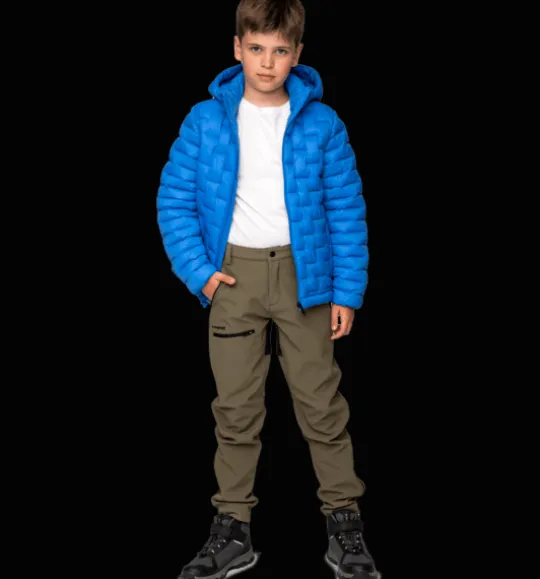 Funktionsbyxor i slitstarkt, stretchigt softshell-material med mjuk och värmande fleece på insidan. De passar bra att använda som friluftsbyxor/vandringsbyxor under kyliga höstdagar. Byxorna har knapphålsresår i midjan för justerbar passform och hällor för bälte. De är förstärkta med vattenavvisande material vid rumpan för att bättre tåla tuffa utomhusäventyr. Byxorna har också tre fickor med dragkedja och förböjda knän för bättre rörlighet. Bensluten går att justera med kardborre och har också en dragkedja i sidan för enklare på- och avtagning. Plagget är fritt från miljöfarliga fluorkarboner.