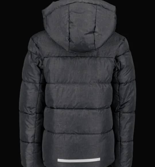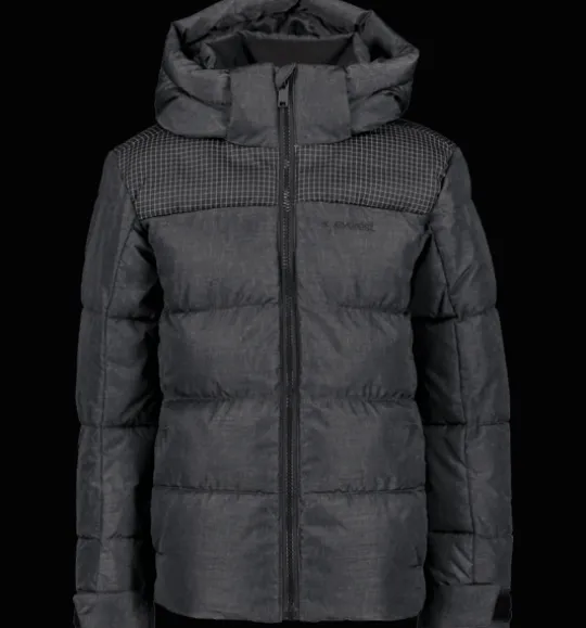 J Wedge Jkt från Everest är en varmfodrad juniorjacka med vind- och vattenavvisande yttertyg. Den är varmt vadderad med syntetvaddering av återvunnen polyester. Jackans axelparti är gjort i ett material som ger ett reflekterande rutmönster. Den har även en reflekterande detalj nertill på ryggen. Huvan är avtagbar och justerbar och kragen har mjukt borstad trikå på insidan för en varmare känsla. Jackan är dessutom justerbar i ärmslut och nederkant. Ärmsluten har också elastiska innermuddar för extra skydd mot vind och kyla. Plaggets ytbehandling är fri från miljöfarliga fluorkarboner och innerfodret är färgat med energibesparande Solution Dye-teknik.