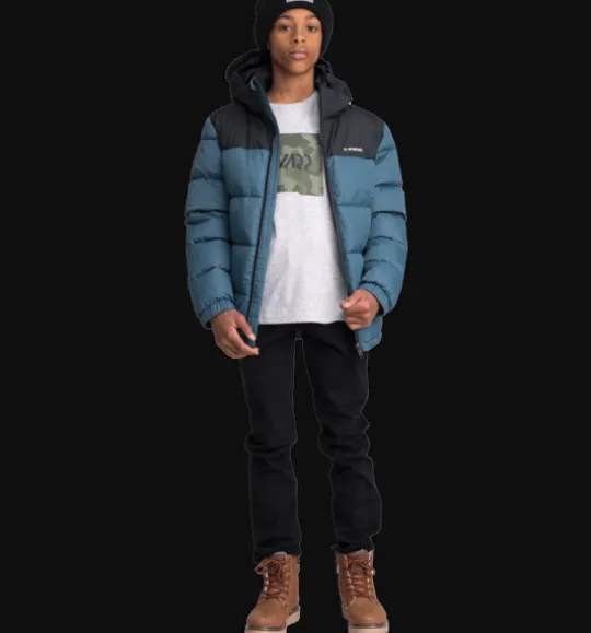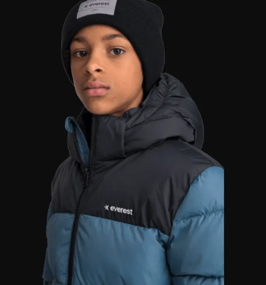 J Yazz Jacket från Everest är en varmfodrad juniorjacka med vind- och vattenavvisande yttertyg och avtagbar huva. Den har en rak passform, värmande vaddering av återvunnen polyester och framfickor med dragkedja. Jackan är också försedd med en reflekterande detalj nertill på ryggen och med mjukt borstad trikå på insidan av kragen för en varmare känsla. Plaggets ytbehandling är fri från miljöfarliga fluorkarboner och innerfodret är färgat med energibesparande Solution Dye-teknik.