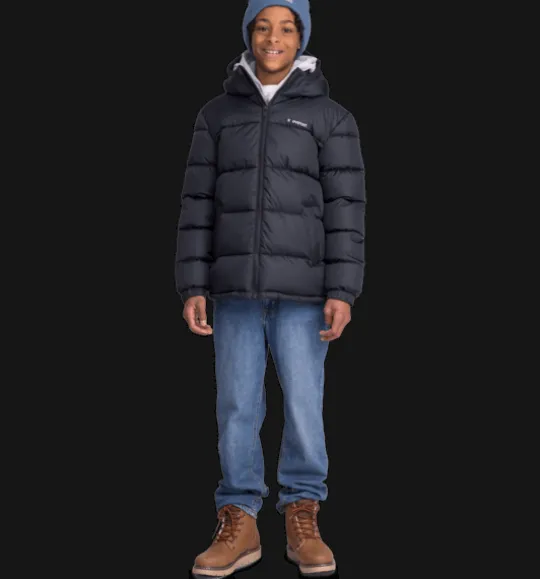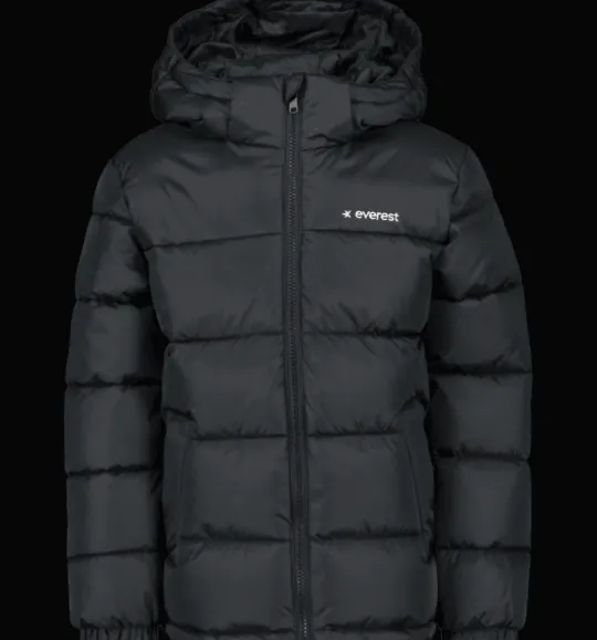 J Yazz Jacket från Everest är en varmfodrad juniorjacka med vind- och vattenavvisande yttertyg och avtagbar huva. Den har en rak passform, värmande vaddering av återvunnen polyester och framfickor med dragkedja. Jackan är också försedd med en reflekterande detalj nertill på ryggen och med mjukt borstad trikå på insidan av kragen för en varmare känsla. Plaggets ytbehandling är fri från miljöfarliga fluorkarboner och innerfodret är färgat med energibesparande Solution Dye-teknik.