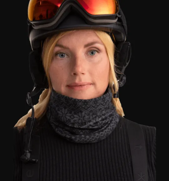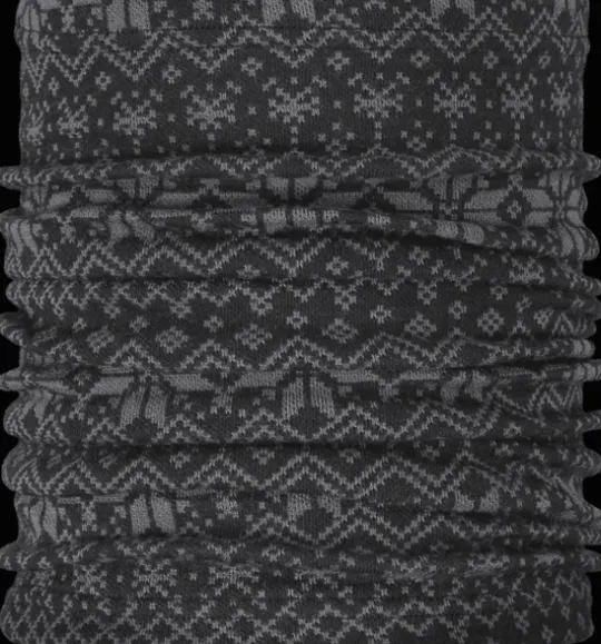 Jacquardstickad halsduk/scarf i tubmodell, gjord i värmande ullblandning. Halsduken består av ett lager tyg och är tillverkad i ull och polyester. Ullen är mulesing-fri merinoull (i 19,5 μm) för att inte klia. Dessutom torkar ullen snabbt och värmer även i fuktigt tillstånd, vilket gör att halsduken passar bra för utomhusaktiviteter oavsett väder, både när det är fuktigt och när det är kallt. Materialet i halsduken är stickat i Sverige.