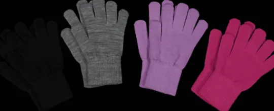 Stickade fingervantar med en elastisk konstruktion som gör att de passar många olika storlekar på händer. De har en tajt passform som expanderar och anpassar sig efter barnets händer.