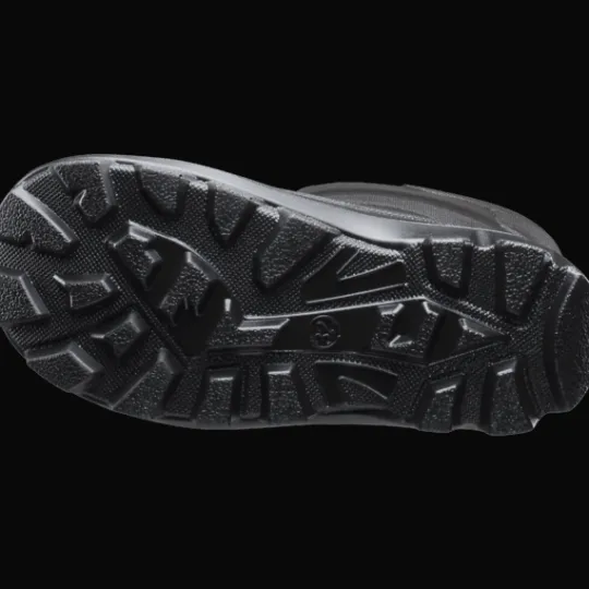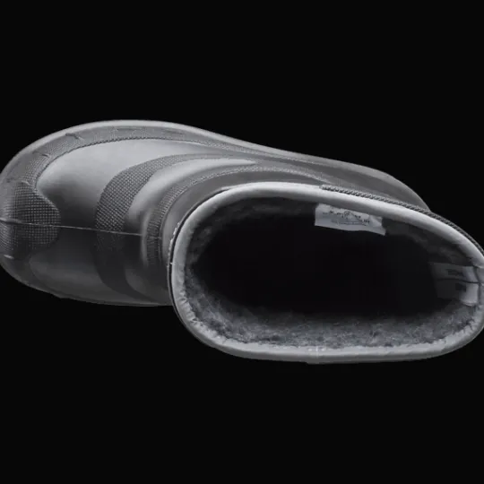 Vattentäta allvädersstövlar i PU-material. Stövlarnas värmande egenskaper är testat i labb och de håller värmen ner till -15°C. Materialet innerhåller luftbubblor vilket isolerar bättre. Dessutom har stövlarna både innerfoder och innersula i ullblandning som värmer även om fodret blir fuktigt. De är förstärkta vid tå och vrist för att ge bättre stöd för fötterna och har reflexband högst upp på skaftet för bättre synlighet i mörker. Yttersulan är slitstark och grovt mönstrad för att ge riktigt bra grepp.