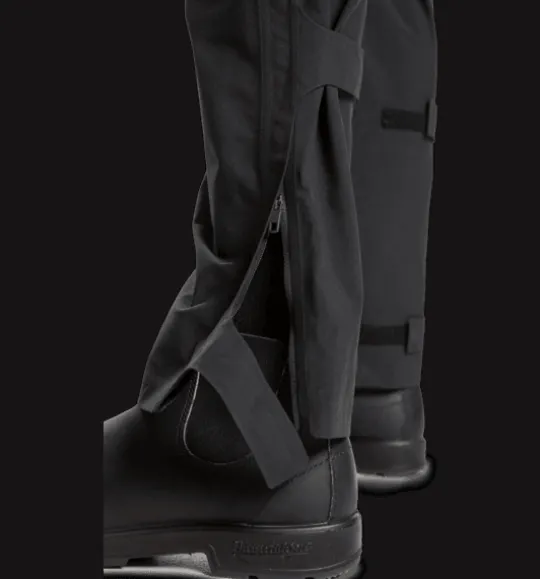 Regnbyxor med TCS Water som gör dem vind- och vattentäta upp till 10 000 mm. Byxorna har bra andasfunktion och är justerbara i midjan och i bensluten. De är också försedda med två framfickor med dragkedja.