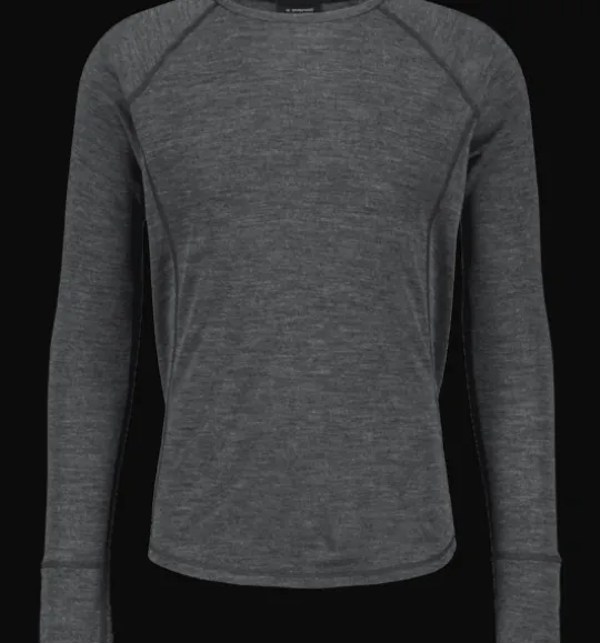 Värmande, snabbtorkande underställströja med bra fukttransport och andasfunktion. Tröjan är gjord i en ullblandning med mjuk merinoull (i 19,5 μm) för att inte klia. Merinoull är ett naturmaterial med en unik förmåga att rena sig själv och därför på naturlig väg förhindra dålig lukt i plagget.