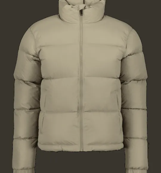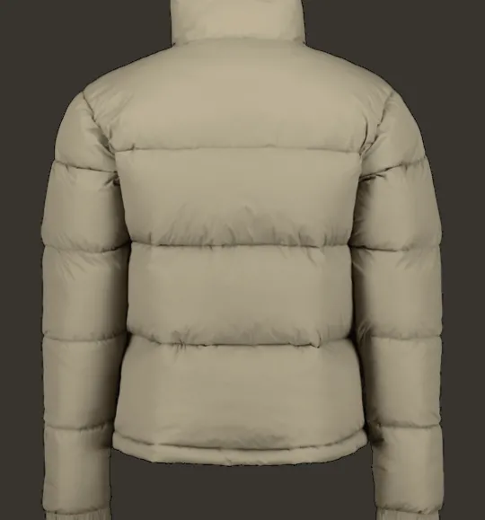 Jacka med puffig, värmande vaddering av återvunnet material. Passar bra att använda både som en höstjacka och som en vinterjacka. Jackans yttertyg är av ripstop-material i nylon, vilket gör den extra slitstark. Den har två ytterfickor med dragkedja och med mjukt innerfoder som ger en varm och skön känsla om du behöver värma händerna. Inuti fickorna finns dessutom ett fastsytt band med reflekterande tryck, smidigt att fälla ut vid behov. Jackan är 3-i-1 kompatibel. Ett fäste bak i nacken gör att du kan koppla ihop en tunnare lättviktsjacka med den här jackan. På så sätt kan du skapa kombinationer av plagg som du kan använda under en längre del av säsongen. Plaggets ytbehandling är fri från miljöfarliga fluorkarboner.