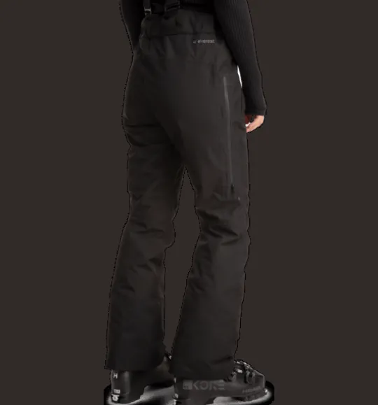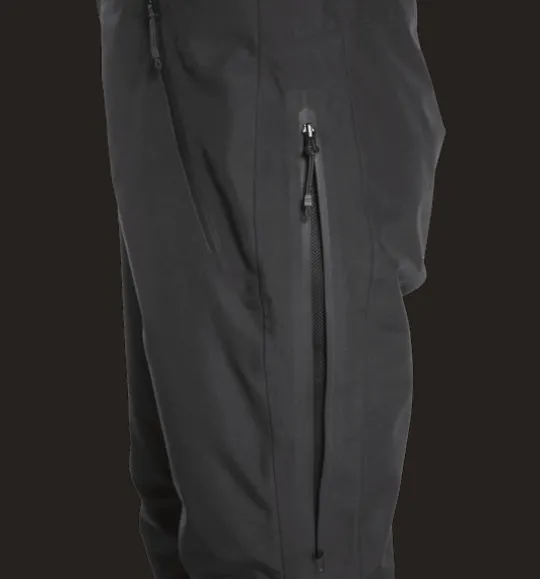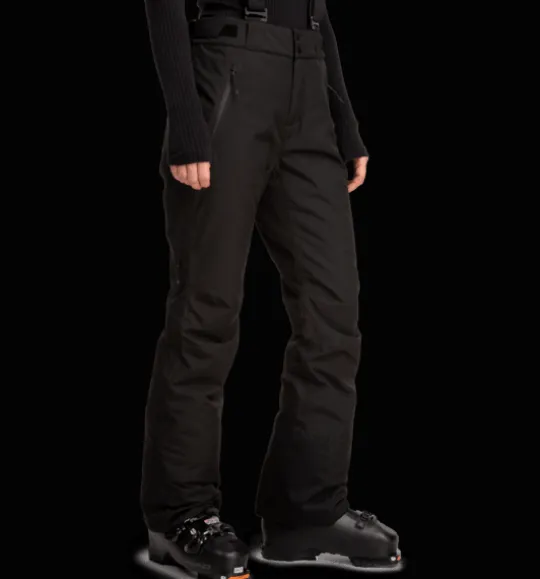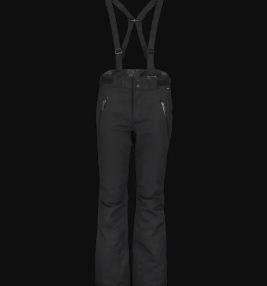 Vadderade skidbyxor med vattentätt yttertyg som även ger effektiv andasfunktion. Alla sömmar på byxorna är tejpade för att ge ett så bra skydd som möjligt mot regn och snö. De har insida med fleece baktill och material med låg friktion framtill för att ge bra värme och för att vara smidiga att komma i och ur. Snölås i bensluten håller snö och kyla ute. Bensluten är dessutom förstärkta på insidan för att bättre stå emot slitage från skidornas vassa stålkanter. Byxorna har också avtagbara hängslen, elastiskt justerbart band i midjan och hällor för bälte. Plagget är fritt från miljöfarliga fluorkarboner och har yttertyg och vaddering i återvunnet material.