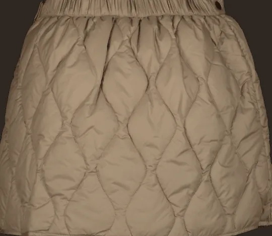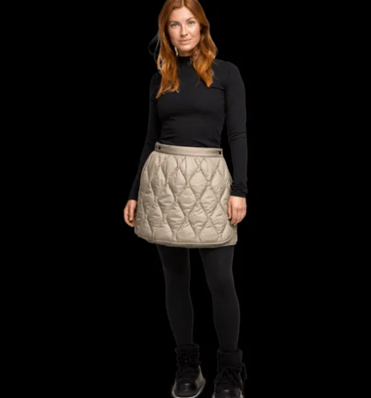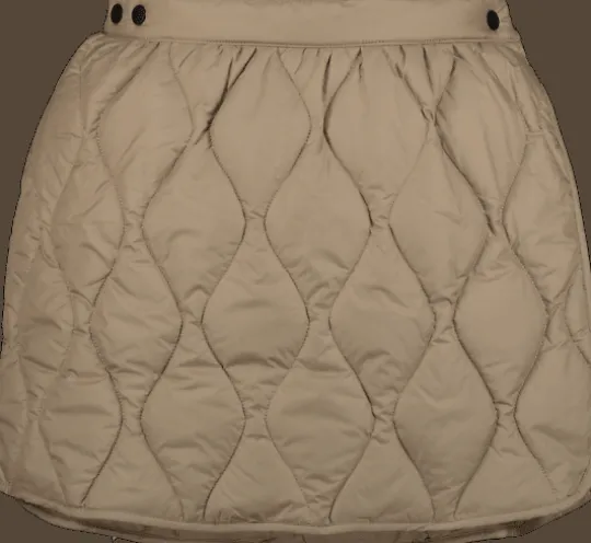 Kviltad, lätt vadderad täckkjol i kort modell. Skön att ha över kjol, byxor eller tights för extra värme över rumpan – både till vardags och till aktiviteter som promenader eller längdskidåkning. Omlottknäppning med flera knappar tillsammans med en elastisk midja baktill gör att en storlek passar många.