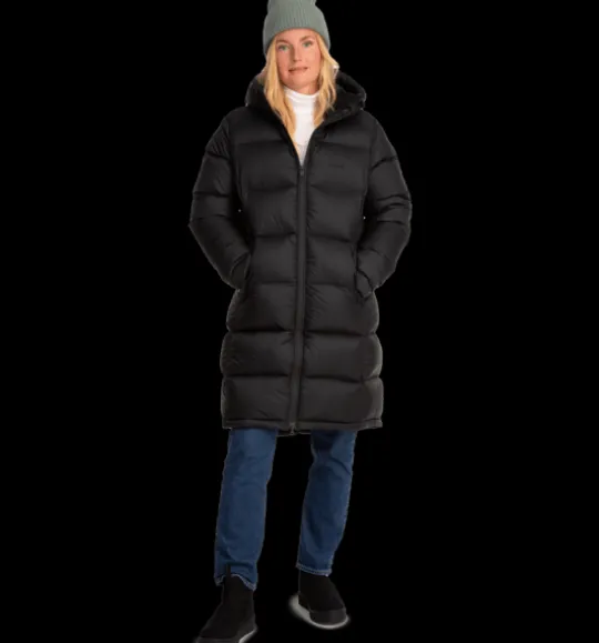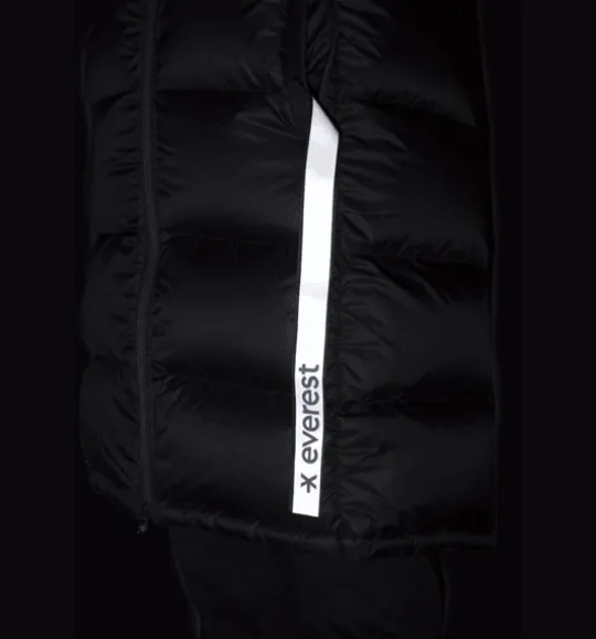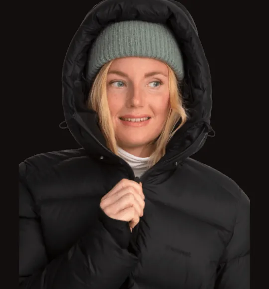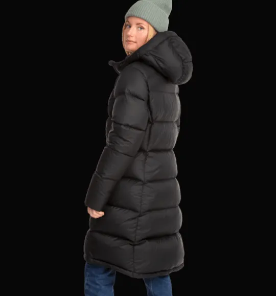 Lång kanalsydd dunkappa med dunfyllning av 90% dun och 10% fjäder för skön värme. Den har en smidig tvåvägs dragkedja fram med skyddande vindslå innanför för att hindra vind och kyla att tränga igenom. Den övre delen av vindslån har mjuk borstad trikå på insidan för en varmare och mjukare känsla. Huvan, som har syntetvaddering, är justerbar både fram och bak för att sitta tätt runt huvudet. Jackan har också flera praktiska fickor, bland annat två utvändiga fickor som stängs med dragkedja. Inuti fickorna finns dessutom ett fastsytt band med reflekterande tryck, smidigt att fälla ut vid behov. Jackan är 3-i-1 kompatibel. Ett fäste bak i nacken gör att du kan koppla ihop en tunnare lättviktsjacka med den här jackan. På så sätt kan du skapa kombinationer av plagg som du kan använda under en längre del av säsongen. Plagget är fritt från miljöfarliga fluorkarboner.