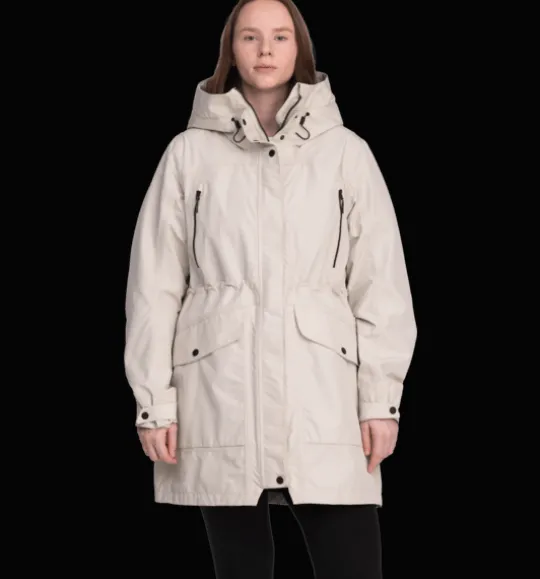 Vårjacka med vind- och vattentätt yttertyg. Den har tejpade vattentäta sömmar, flera praktiska fickor och tvåvägs dragkedja fram med vindslå både framför och bakom för att hindra vind och kyla att tränga igenom. Jackan är dessutom justerbar i huva, midja och ärmslut för en personlig och bekväm passform. Jackan är 3-i-1 kompatibel. Ett fäste bak i nacken gör att du kan koppla ihop en tunnare lättviktsjacka med den här jackan. På så sätt kan du skapa kombinationer av plagg som du kan använda under en längre del av säsongen. Plaggets ytbehandling är fri från miljöfarliga fluorkarboner och innerfodret är färgat med energibesparande Solution Dye-teknik.