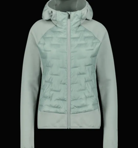 Lätt vadderad jacka med fram- och baksida i ett lätt och smidigt material som är vindtätt och vattenavvisande. Ärmar, huva, nederdel och sidopaneler är gjorda i ett mjukt, följsamt stretchmaterial som är borstat på insidan för värme och komfort. Jackans ytbehandling är fri från miljöfarliga fluorkarboner.