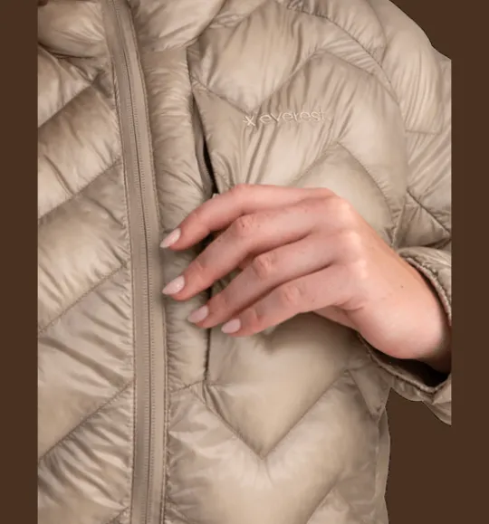 Yttertyg och innerfoder i återvunnen nylon, vaddering i återvunnen polyester