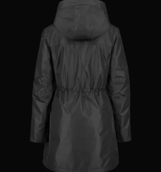 Vind- och vattentät parka i något längre modell. Med lätt vaddering i återvunnen polyester, dragsko i midjan och huva med justering både fram och bak för en passform som sluter tätt och stänger ute vind och vatten. Jackan har ett mjukt foder framtill på insidan av kragen som värmer lite extra och ger en mjuk och skön känsla. Den har en skyddande vindslå framför dragkedjan fram, som stängs med tryckknappar och som hindrar vind och kyla att komma in. Även innanför dragkedjan finns en vindslå, som håller vind och kyla ute och som skyddar plaggen under från att fastna i dragkedjan. Ärmsluten är justerbara med knappstängning och har även en praktisk utfällbar detalj i reflekterande material. Jackan har dessutom flera fickor — två bröstfickor med dragkedja, en innerficka i mesh samt två midjefickor med ficklock och mjukt innerfoder. Jackan är 3-i-1 kompatibel. Ett fäste bak i nacken gör att du kan koppla ihop en tunnare lättviktsjacka med den här jackan. På så sätt kan du skapa kombinationer av plagg som du kan använda under en längre del av säsongen. Plagget är fritt från miljöfarliga fluorkarboner och har innerfoder färgat med energibesparande Solution Dye-teknik.