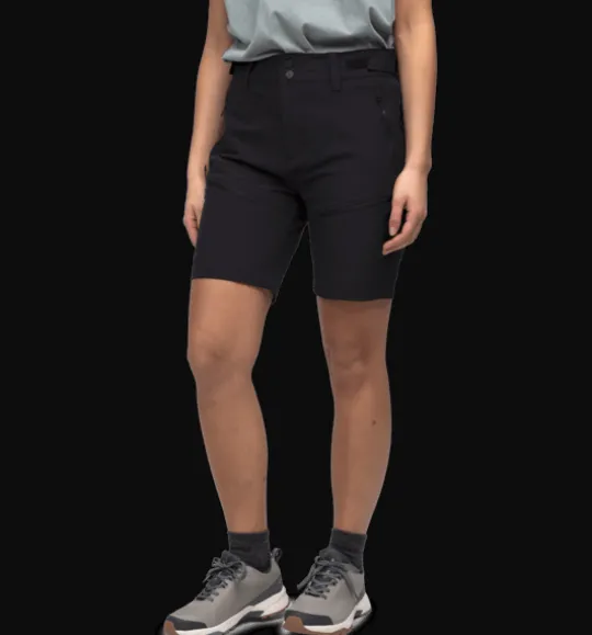 Friluftsshorts som passar lika bra på fritiden som till vandringen. De är gjorda i ett lätt och vattenavvisande material som torkar snabbt och som ger bra andasfunktion. Materialet är dessutom stretchigt för att du ska kunna röra dig obehindrat oavsett aktivitet. Shortsen är justerbara i midjan och har hällor för bälte. De är också utrustade med två sidofickor och två benfickor, alla med dragkedja.