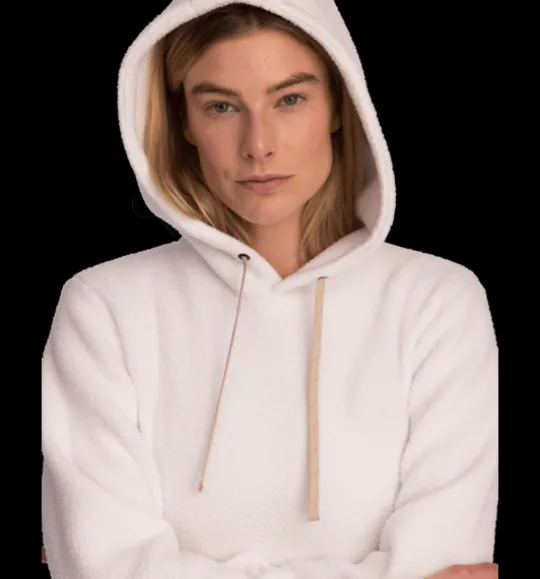Funktionströja i mjuk och värmande pile. Tröjan har en justerbar huva och känguruficka fram.