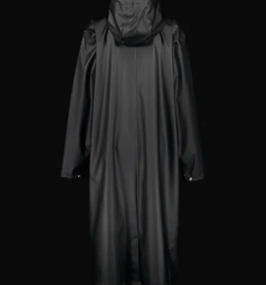 Regnkappa i PU-material. Den har vattentätt yttertyg, svetsade, vattentäta sömmar och mjukt innerfoder av återvunnet material. Kappan är också utrustad med två sidofickor samt med justerbar huva och justerbara ärmslut.