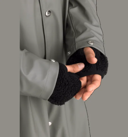 Regnkappa i PU-material. Den har vattentätt yttertyg, svetsade, vattentäta sömmar och mjukt innerfoder av återvunnet material. Kappan är också utrustad med två sidofickor samt med justerbar huva och justerbara ärmslut.