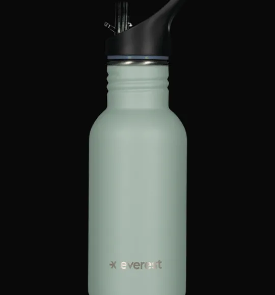 Vattenflaska tillverkad i rostfritt stål. Flaskan är försedd med praktisk ögla som kan användas för fastsättning med exempelvis en karbinhake eller bara för att bära den med ett finger.