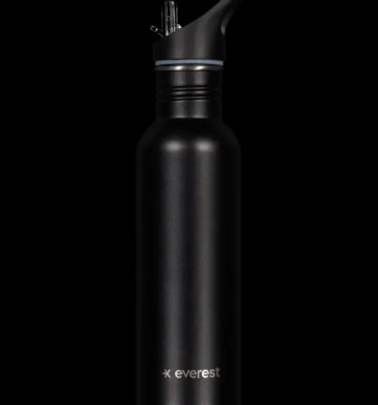 Vattenflaska tillverkad i rostfritt stål. Flaskan är försedd med praktisk ögla som kan användas för fastsättning med exempelvis en karbinhake eller bara för att bära den med ett finger.