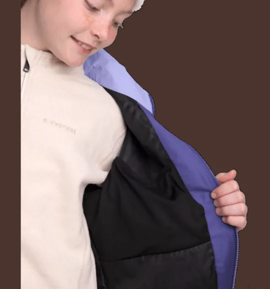 Allround Jacket från Everest är en vind- och vattentät vår- och höstjacka för junior. Den passar bra att använda både som en regnjacka och som en funktionsjacka. Jackan har vind- och vattentätt yttertyg, heltejpade vattentäta sömmar och mycket bra andasfunktion. Den har också ett mjukt innerfoder men är ovadderad. Huvan är avtagbar och justerbar och på insidan av kragen finns ett mjukt foder för en varmare känsla. Jackan är även försedd med en reflekterande detalj nertill på ryggen och med en skyddande vindslå innanför dragkedjan fram för att hindra vind och kyla att tränga igenom. Jackans vattenavvisande ytbehandling är fri från PFAS och innerfodret är färgat med energibesparande Solution Dye-teknik.