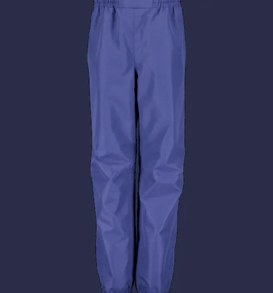 Vind- och vattentäta byxor för junior, passar bra både som regnbyxor och som funktionsbyxor. De har vind- och vattentätt yttertyg, heltejpade vattentäta sömmar och mycket bra andasfunktion. Byxorna har också mjukt innerfoder men är ovadderade. De är justerbara i midjan för bästa passform och har förböjda knän för bättre rörlighet. Byxorna har även elastiska benslut för att hålla vind och regn ute. De är dessutom utrustade med en reflekterande detalj baktill på byxbenet. Plaggets ytbehandling är fri från miljöfarliga fluorkarboner och innerfodret är färgat med energibesparande Solution Dye-teknik.