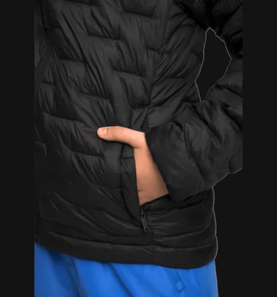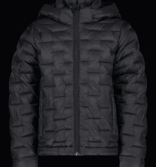 Lätt vadderad linerjacka för barn, med rak passform och med lätt vattenavvisande yttertyg. Den har två sidofickor med dragkedja, och avtagbar huva för barnets säkerhet. Jackan passar bra att använda för sig i lite varmare väder eller som ett värmande lager under en regnjacka eller skaljacka i kallare temperaturer. Vadderingen är gjord i 100% återvunnen polyester och ytbehandlingen är fri från miljöfarliga fluorkarboner.