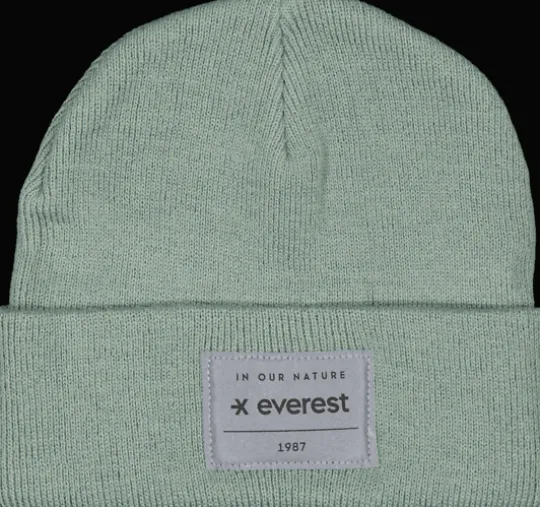 Stickad mössa i akryl. Ett uppvik nedtill gör den dubbelt så tjock över öronen för ökad värme. Den är dessutom försedd med ett reflekterande Everest-märke framtill.