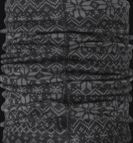 Jacquardstickad halsduk/scarf i tubmodell, gjord i värmande ullblandning. Halsduken består av ett lager tyg och är tillverkad i ull och polyester. Ullen är mulesing-fri merinoull (i 19,5 μm) för att inte klia. Dessutom torkar ullen snabbt och värmer även i fuktigt tillstånd, vilket gör att halsduken passar bra för utomhusaktiviteter oavsett väder, både när det är fuktigt och när det är kallt. Materialet i halsduken är stickat i Sverige.
