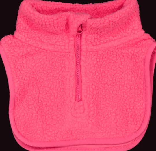 Fuskpolokrage i mjuk och värmande pile av återvunnen polyester. Den öppnas och stängs med en dragkedja framtill.