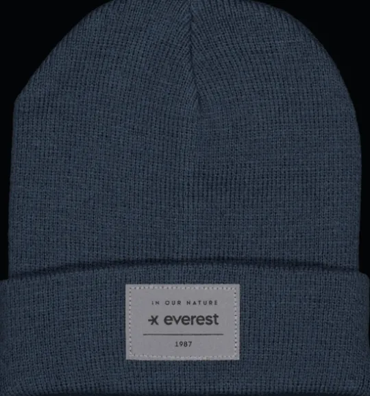 Stickad mössa i akryl. Ett uppfick nertill gör den dubbelt så tjock över öronen, för extra värme där det behövs som mest. Även försedd med ett reflekterande Everest-märke framtill.