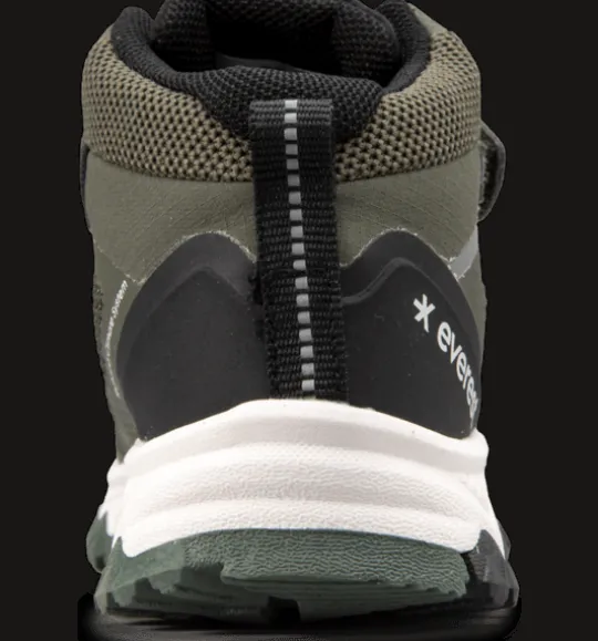 Vattentäta vandringsskor/sneakers i mid-modell. Skorna har en ovandel i PU och polyester som även har ett vattentätt membran för att hålla fötterna torra och bekväma. Kardborrerem tillsammans med elastiska skosnören gör skorna lätta att ta på och av. De är också försedda med en löstagbar, stötdämpande innersula för bekväma steg och med en slittålig mellan- och yttersula i TPR.