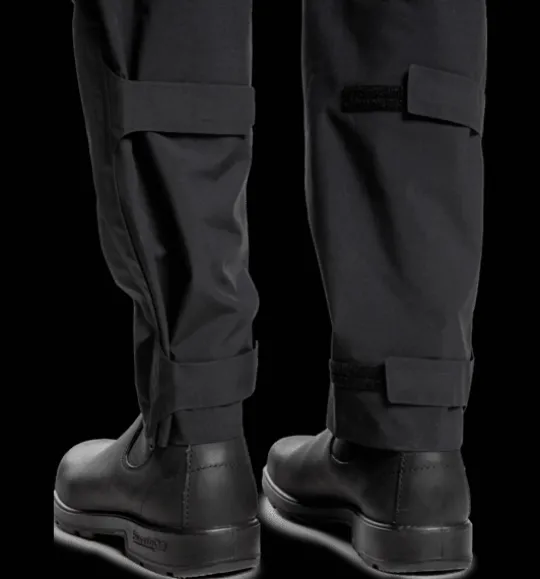 Regnbyxor med TCS Water som gör dem vind- och vattentäta upp till 10 000 mm. Byxorna har bra andasfunktion och är justerbara i midjan och i bensluten. De är också försedda med två framfickor med dragkedja.