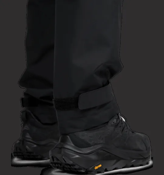 Regnbyxor, perfekta att dra på sig utanpå dina vanliga kläder så att du kan fortsätta med aktiviteten även om vädret är sämre. De är gjorda i ett vattentätt material och har bra andasfunktion för att du inte ska bli allt för varm. Elastisk midja med dragsko gör dem enkla att dra på sig och de justerbara bensluten ger en bra passform samtidigt som de hindrar regnet från att komma in. Nycklar och telefon kan du förvara säkert i sidofickorna med dragkedja. Plaggets ytbehandling är fri från PFAS.