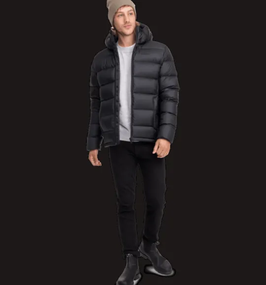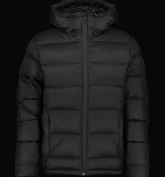 Dunjacka med värmande 90/10-dunfyllning. Försedd med justerbar huva, elastisk innermudd med tumhål i ärmsluten samt dragkedja fram med skyddande vindslå innanför för att hindra vind och kyla att tränga igenom. Den har dessutom dragsko i nederkant, två innerfickor, samt stora generösa ytterfickor med dragkedja och med mjuk borstad trikå på insidan för en varmare känsla. Plagget är fritt från miljöfarliga fluorkarboner.