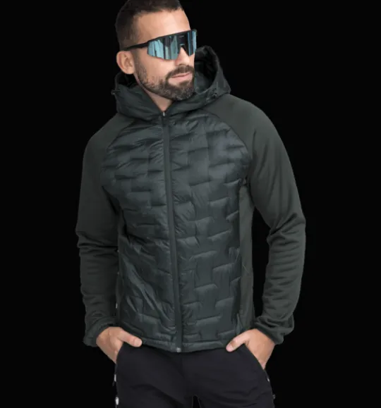 Hybridjacka från Everest, med lätt vadderad huva och fram- och baksida. Materialet på de vadderade delarna är dessutom vindtätt och vattenavvisande. Ärmarna och sidorna är gjorda i mjuk, följsam stretch och har borstad insida för värme och komfort. Jackan är även försedd med justerbar huva och med sidofickor med dragkedja. Plaggets ytbehandling är fri från PFAS.
