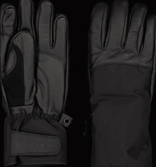 Varmfodrade skid- och snowboardhandskar i slittåligt, vattenavvisande material och med partier i getskinn som är slitstarkt, följsamt och ger bra grepp. De har insida i mjuk, borstad fleece och är förstärkta vid innerhanden och tummen för att bättre stå emot slitage från exempelvis skidstavar. De är också utrustade med justerbart kardborreband vid handleden och med en rem att fästa runt handleden för att inte tappa bort handskarna. Dessutom kan de kopplas ihop och hängas upp med den medföljande karbinhaken – perfekt för att exempelvis hänga dem på tork.