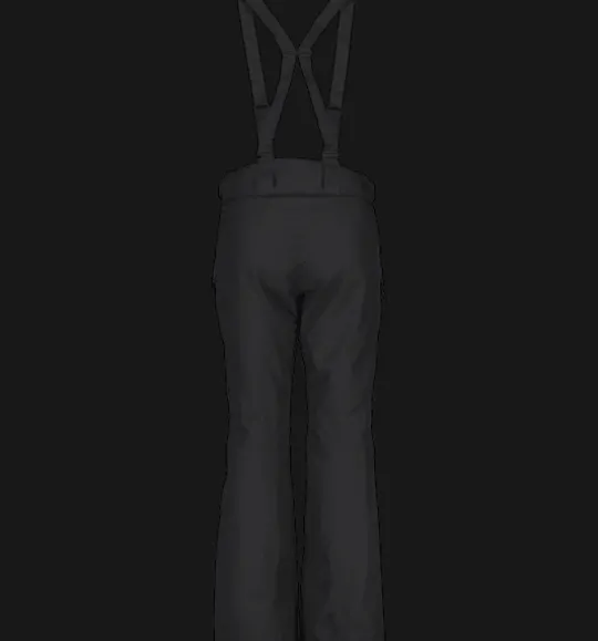 Vadderade skidbyxor med vattentätt yttertyg som även ger effektiv andasfunktion. Alla sömmar på byxorna är tejpade för att ge ett så bra skydd som möjligt mot regn och snö. De har insida med fleece baktill och material med låg friktion framtill för att ge bra värme och för att vara smidiga att komma i och ur. Snölås i bensluten håller snö och kyla ute. Bensluten är dessutom förstärkta på insidan för att bättre stå emot slitage från skidornas vassa stålkanter. Byxorna har också avtagbara hängslen, elastiskt justerbart band i midjan och hällor för bälte. Plagget är fritt från miljöfarliga fluorkarboner och har yttertyg och vaddering i återvunnet material.