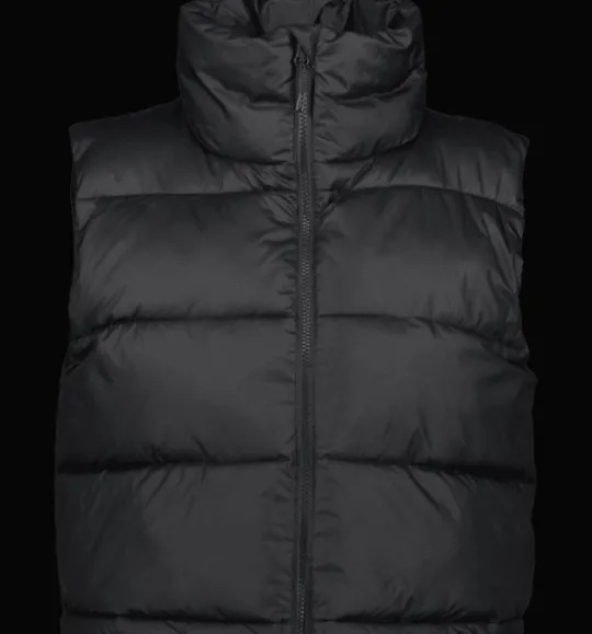 Kort vadderad väst som passar perfekt som en höstjacka i början av säsongen när dagarna börjar bli lite kyligare. Den har en elastisk och justerbar dragsko nertill för att du ska kunna dra åt och justera siluetten. Västen är 3-i-1 kompatibel. Ett fäste bak i nacken gör att du kan koppla ihop en tunnare lättviktsjacka under den här västen. På så sätt kan du skapa kombinationer av plagg som du kan använda under en längre del av säsongen.
