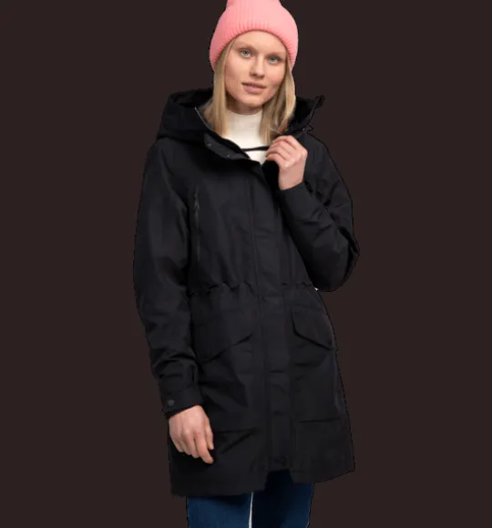 Vårjacka med vind- och vattentätt yttertyg. Den har tejpade vattentäta sömmar, flera praktiska fickor och tvåvägs dragkedja fram med vindslå både framför och bakom för att hindra vind och kyla att tränga igenom. Jackan är dessutom justerbar i huva, midja och ärmslut för en personlig och bekväm passform. Jackan är 3-i-1 kompatibel. Ett fäste bak i nacken gör att du kan koppla ihop en tunnare lättviktsjacka med den här jackan. På så sätt kan du skapa kombinationer av plagg som du kan använda under en längre del av säsongen. Plaggets ytbehandling är fri från miljöfarliga fluorkarboner och innerfodret är färgat med energibesparande Solution Dye-teknik.
