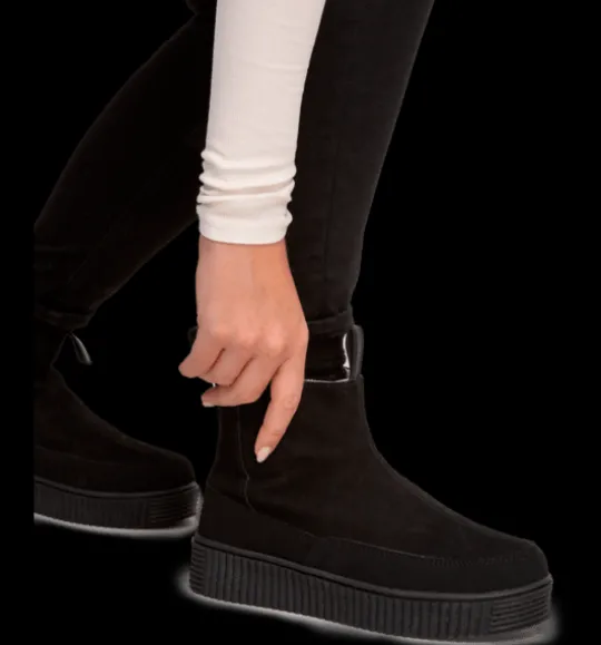 Varmfodrade vinterkängor med rejäl yttersula i gummi för bra grepp. Innerfodret består till 30% av ull för skön värme och komfort.
