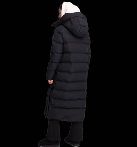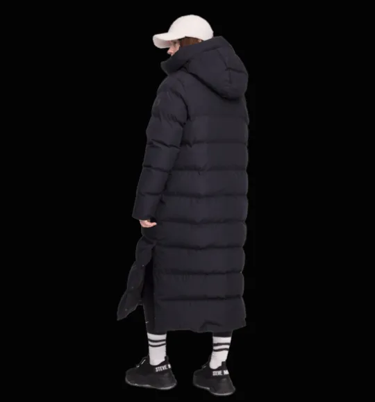 Juneau Coat från Everest är en lång, kanalsydd kappa med TCS Insuloft – en syntetvaddering i 100% återvunnen polyester med dunliknande egenskaper. Den har ett yttertyg som är vind- och vattentätt men har inte tejpade sömmar så se upp med för hård, långvarig nederbörd. Jackan har en något lösare passform som gör att du får plats med en tjockare tröja under när det är riktigt kallt ute. Den har tvåvägs dragkedja framtill och sprund nertill i sidorna som öppnas och stängs med tryckknappar. Perfekt om du vill öka vidden på jackan så att du kan röra dig lättare om du är ute på en snabb promenad eller kliver i och ur bilen. Den är också försedd med en stor skön huva och med framfickor med mjukt innerfoder för en varmare känsla. Inuti fickorna finns dessutom ett band med reflekterande tryck, smidigt att fälla ut vid behov. Kappan är 3-i-1 kompatibel. Ett fäste bak i nacken gör att du kan koppla ihop en tunnare lättviktsjacka eller väst under den här höst- och vinterjackan. På så sätt kan du skapa kombinationer av plagg som du kan använda under en längre del av säsongen. Plaggets vattenavvisande ytbehandling är fri från PFAS.