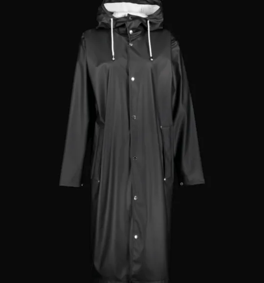 Regnkappa i PU-material. Den har vattentätt yttertyg, svetsade, vattentäta sömmar och mjukt innerfoder av återvunnet material. Kappan är också utrustad med två sidofickor samt med justerbar huva och justerbara ärmslut.